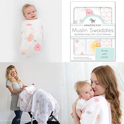 Amazon Com Amazing Baby Cotton Muslin Swaddle Blankets Watercolor Roses Pink Pack Of 3 Everything Else